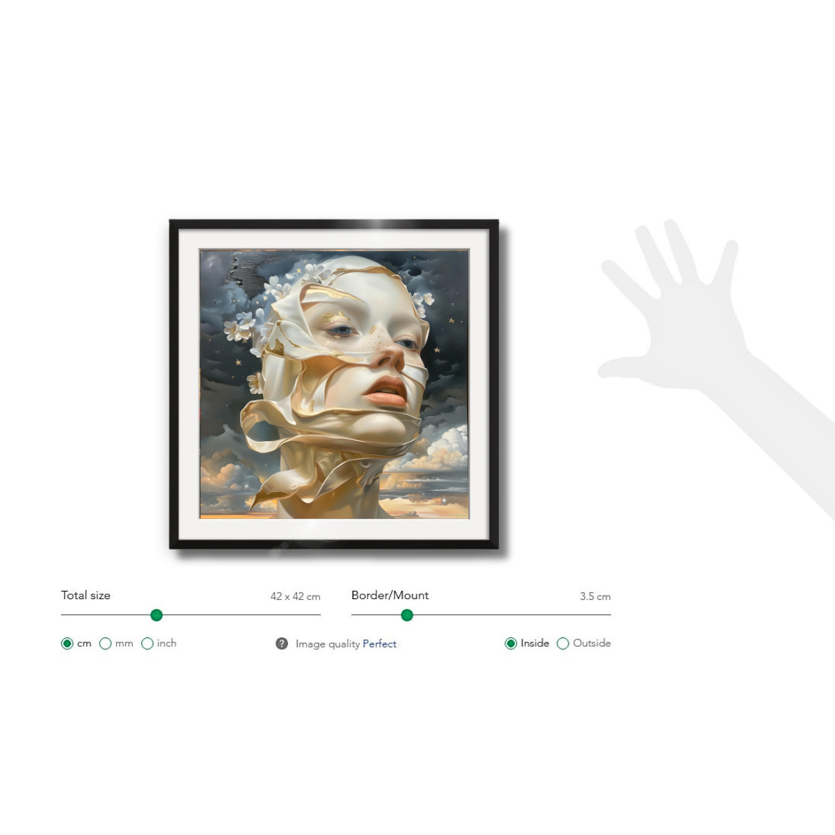 Frame of the painting: Black Lacquer, 14mm width, 13mm depth. However, you can choose another frame color: Dark Wood, White, Light Wood, Metallic.