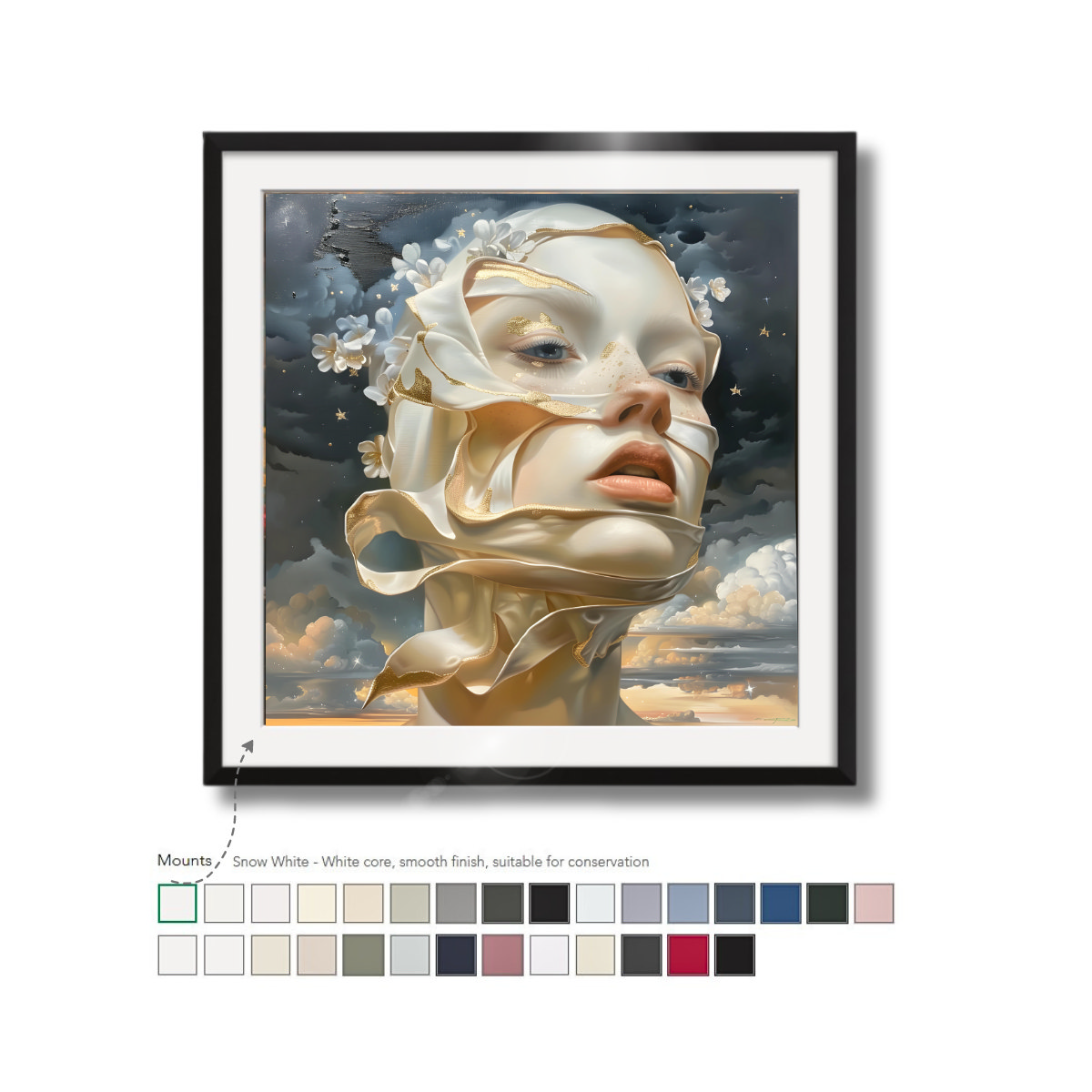 Our white core, black core, and conservation mounts are available in a wide selection of colors. They won’t discolor over time and are cut to size to fit your print and frame. Mounts help to lead the eye into the image and create added depth to your framed print.