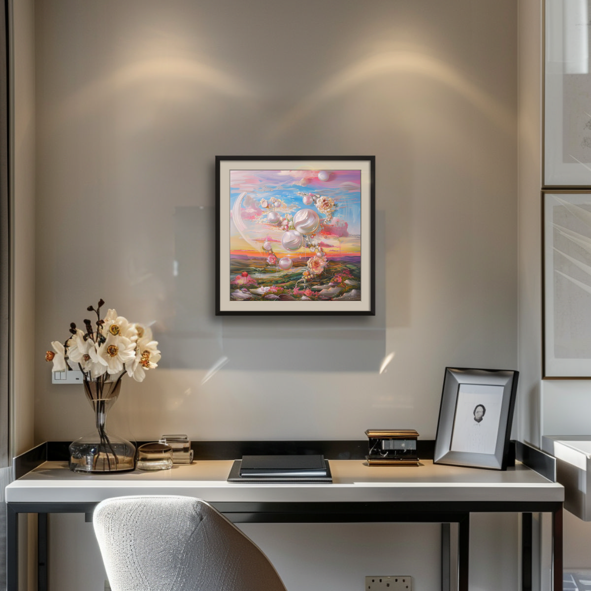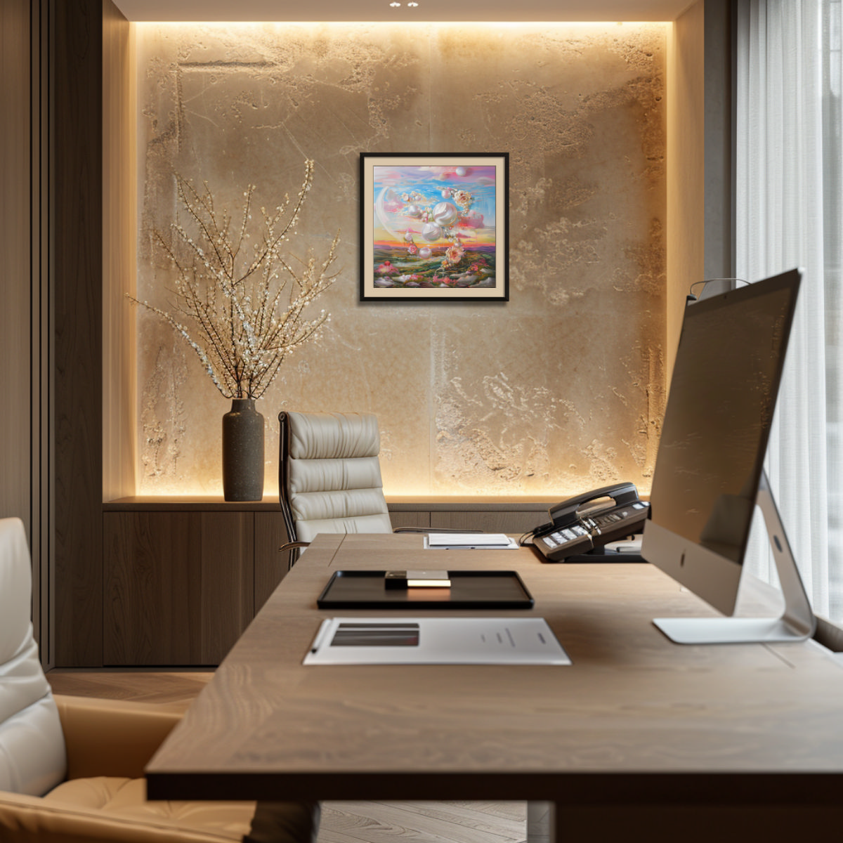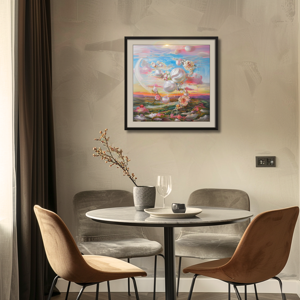 NOTE: The images in situ are computer generated, might not be to scale, and serve for illustration purposes only. Due to differences in color settings on your monitor or phone screen, the colors of the painting might be perceived differently.
