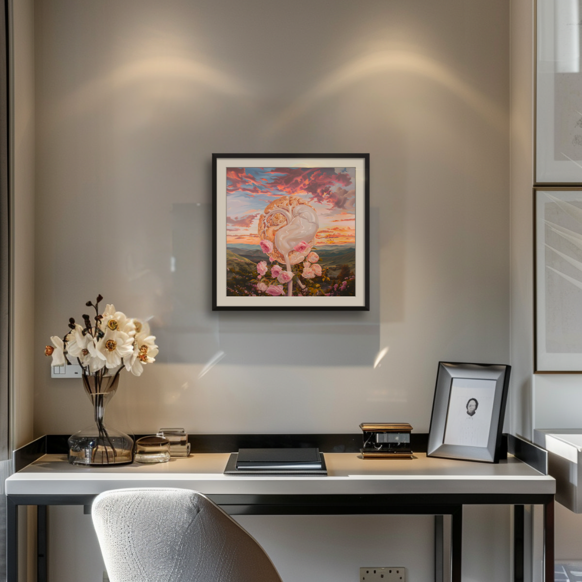 NOTE: The images in situ are computer generated, might not be to scale, and serve for illustration purposes only. Due to differences in color settings on your monitor or phone screen, the colors of the painting might be perceived differently.
