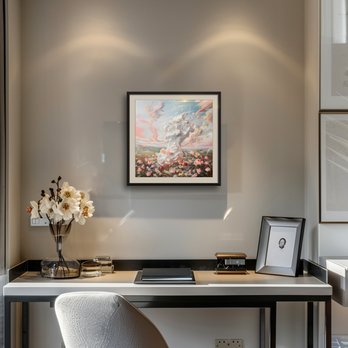 Frame of the painting: Black Lacquer, 14mm width, 13mm depth. However, you can choose another frame color: Dark Wood, White, Light Wood, Metallic.