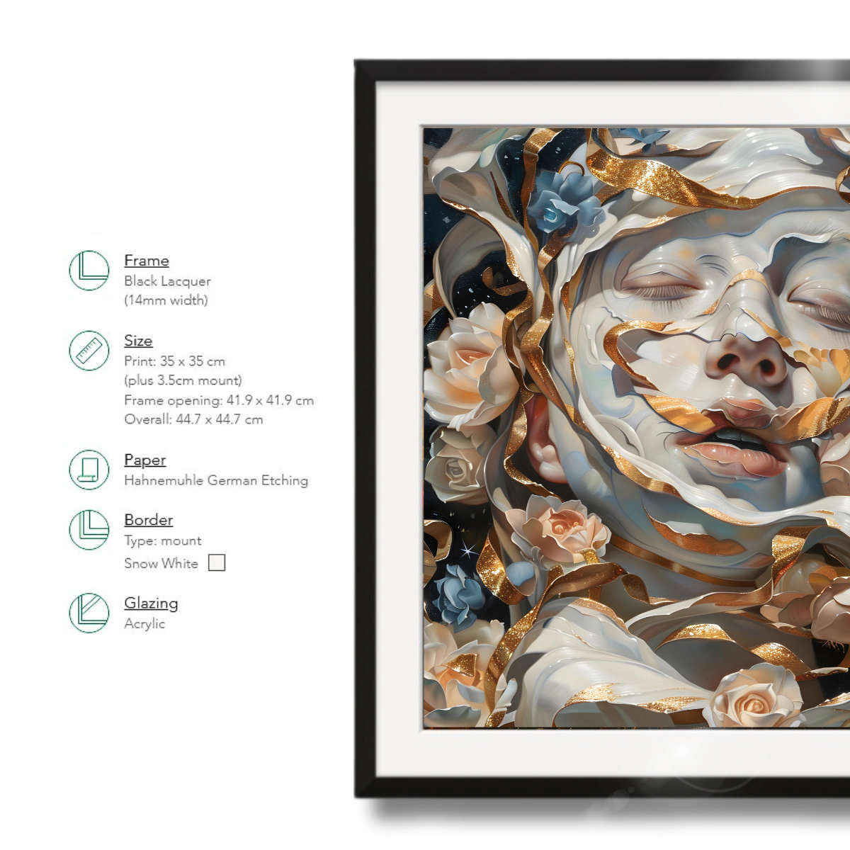 Paper: Hahnemuhle German Etching. Matt / 310gsm. A heavy-duty paper with a more textured finish than Photorag, a velvety matt surface, and a warm white hue with traits of a traditional artist board — reproduces painterly images, lithographs, and pastels superbly.