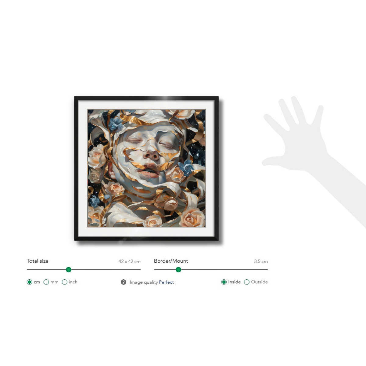 Frame of the painting: Black Lacquer, 14mm width, 13mm depth. However, you can choose another frame color: Dark Wood, White, Light Wood, Metallic.