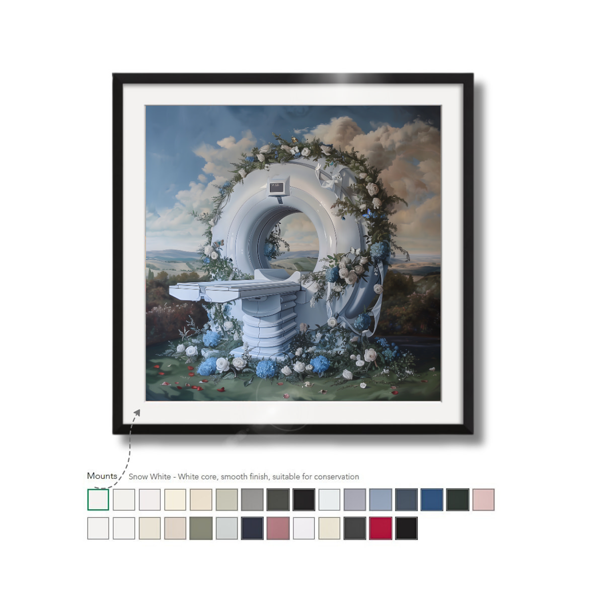As an artist, I wanted to illustrate the union between advanced medical technology and the serenity of nature. This painting features a CT scanner set in a fantastical world filled with vibrant flowers and lush greenery. The harmonious blue and green tones, contrasted with the sleek, metallic design of the scanner, symbolize the balance between modern medicine and natural healing. The floral surroundings aim to soften the clinical nature of the machine, portraying a sense of peace and wellness in the diagnostic process.