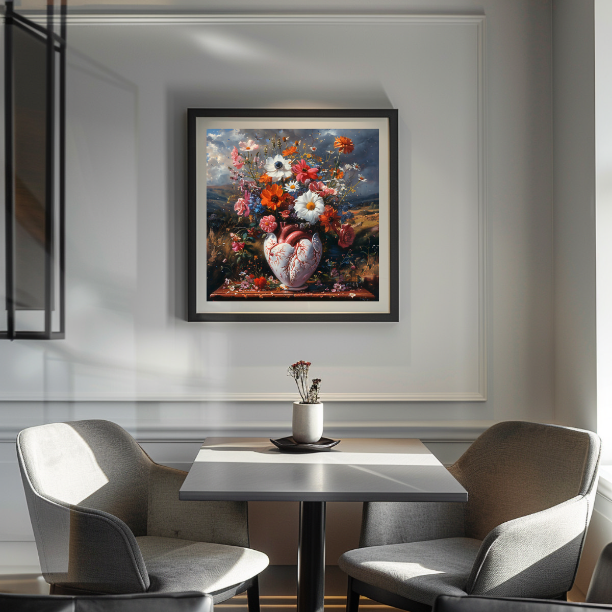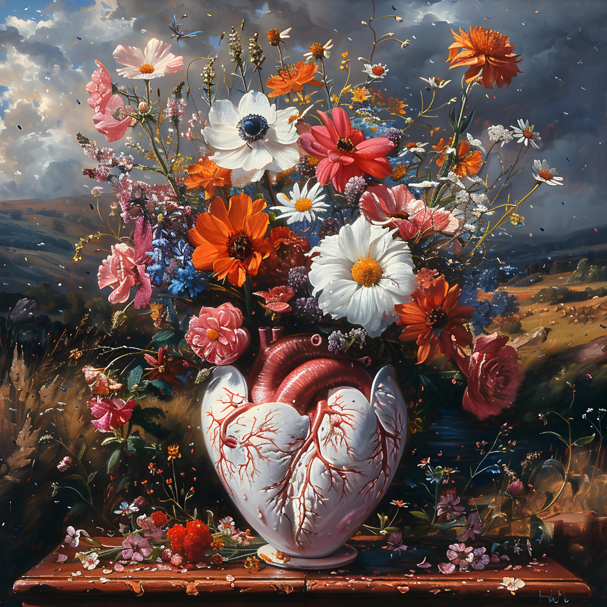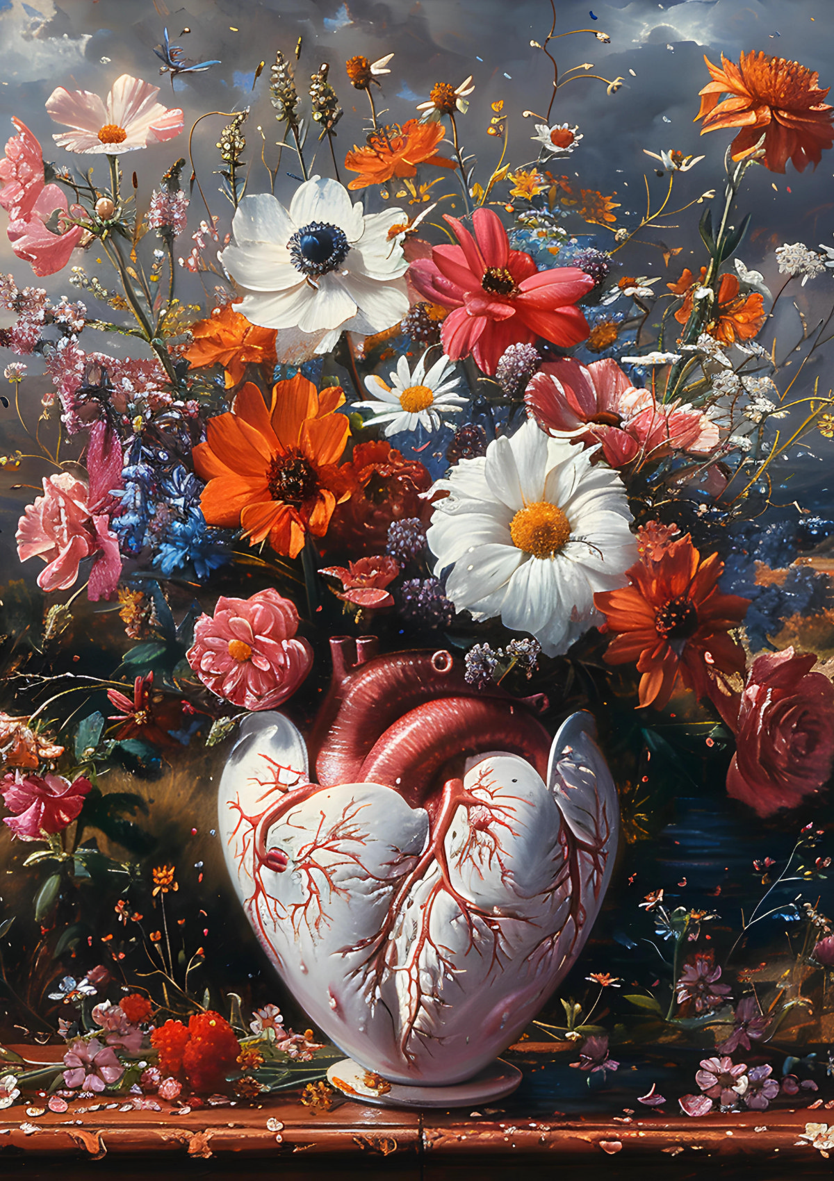 This painting represents the rhythm of a heart, using swirling reds and pulsating blues to illustrate the life force that runs through our veins. The use of abstract forms symbolizes the heartbeat's syncopation.