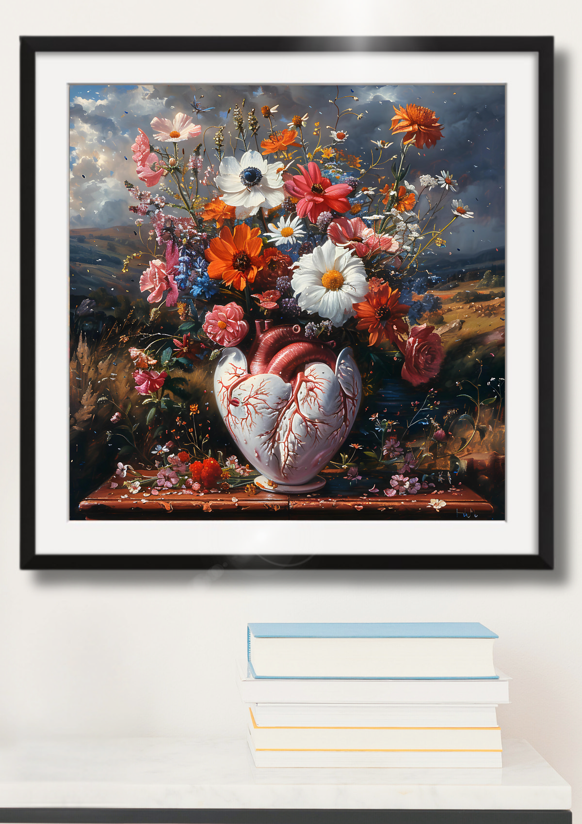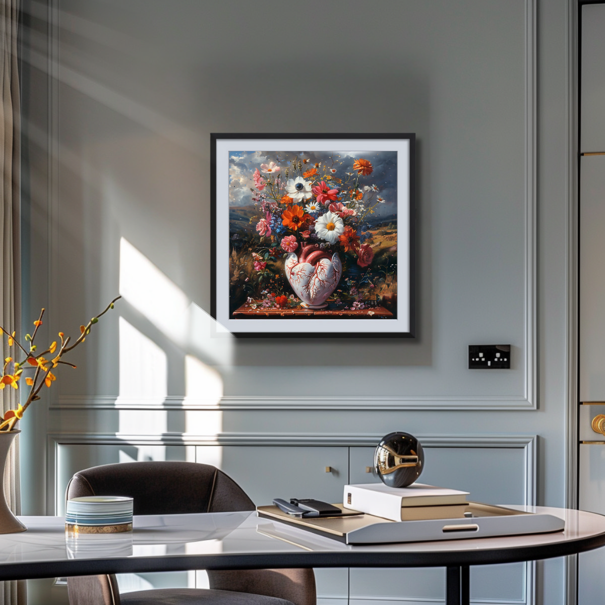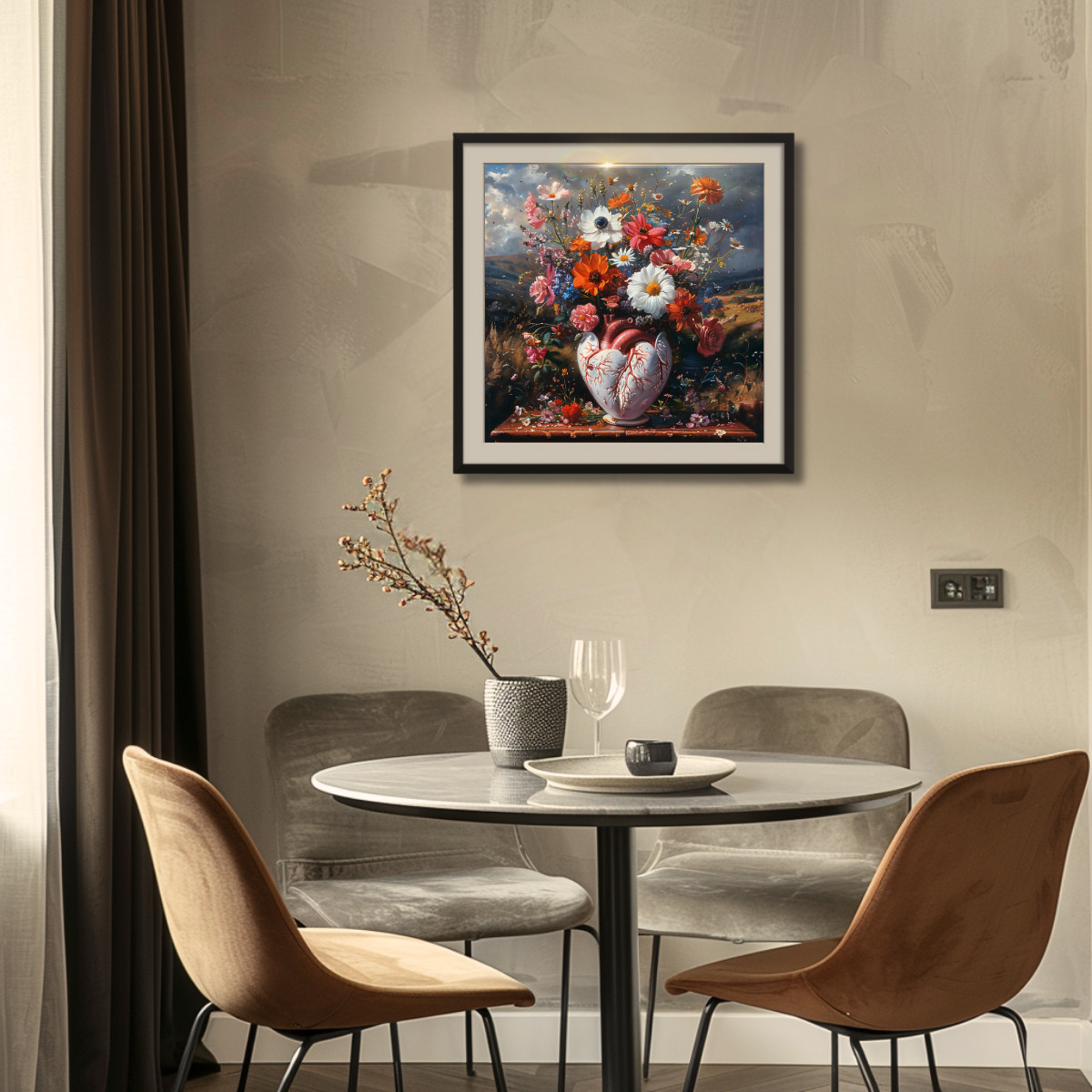 This painting represents the rhythm of a heart, using swirling reds and pulsating blues to illustrate the life force that runs through our veins. The use of abstract forms symbolizes the heartbeat's syncopation.