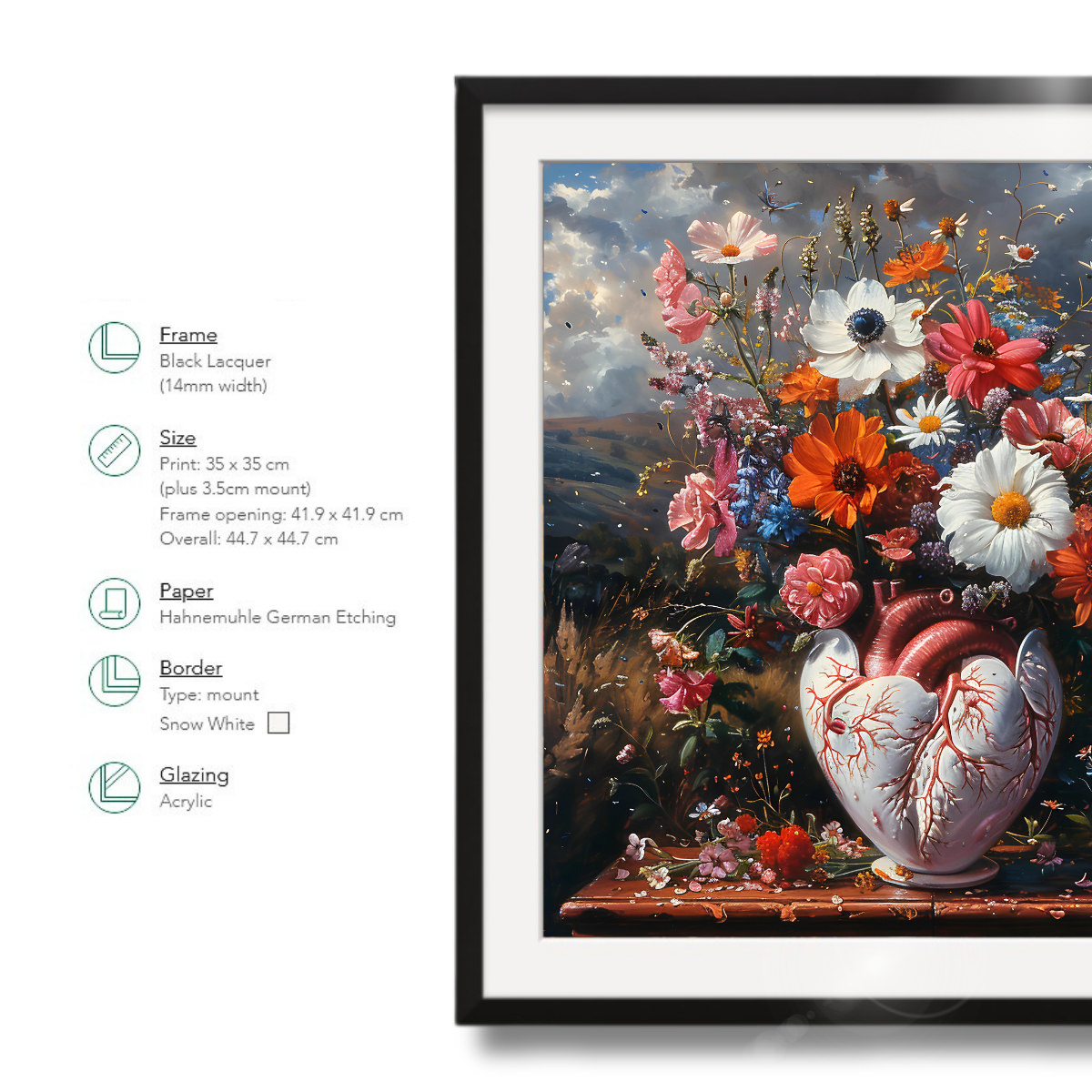 Paper: Hahnemuhle German Etching. Matt / 310gsm. A heavy-duty paper with a more textured finish than Photorag, a velvety matt surface, and a warm white hue with traits of a traditional artist board — reproduces painterly images, lithographs, and pastels superbly.