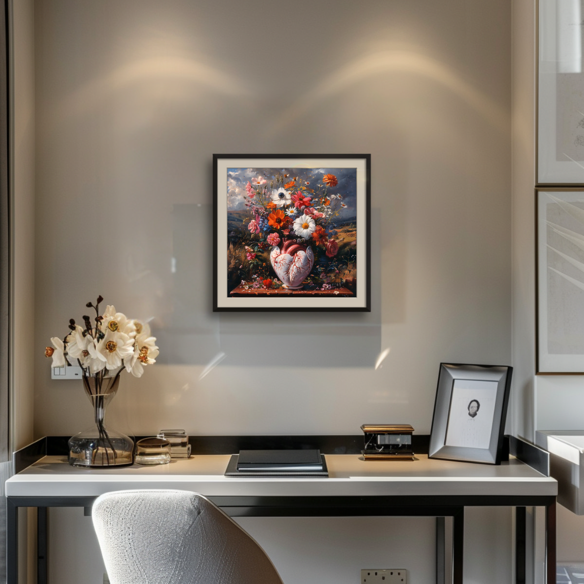 Frame of the painting: Black Lacquer, 14mm width, 13mm depth. However, you can choose another frame color: Dark Wood, White, Light Wood, Metallic.