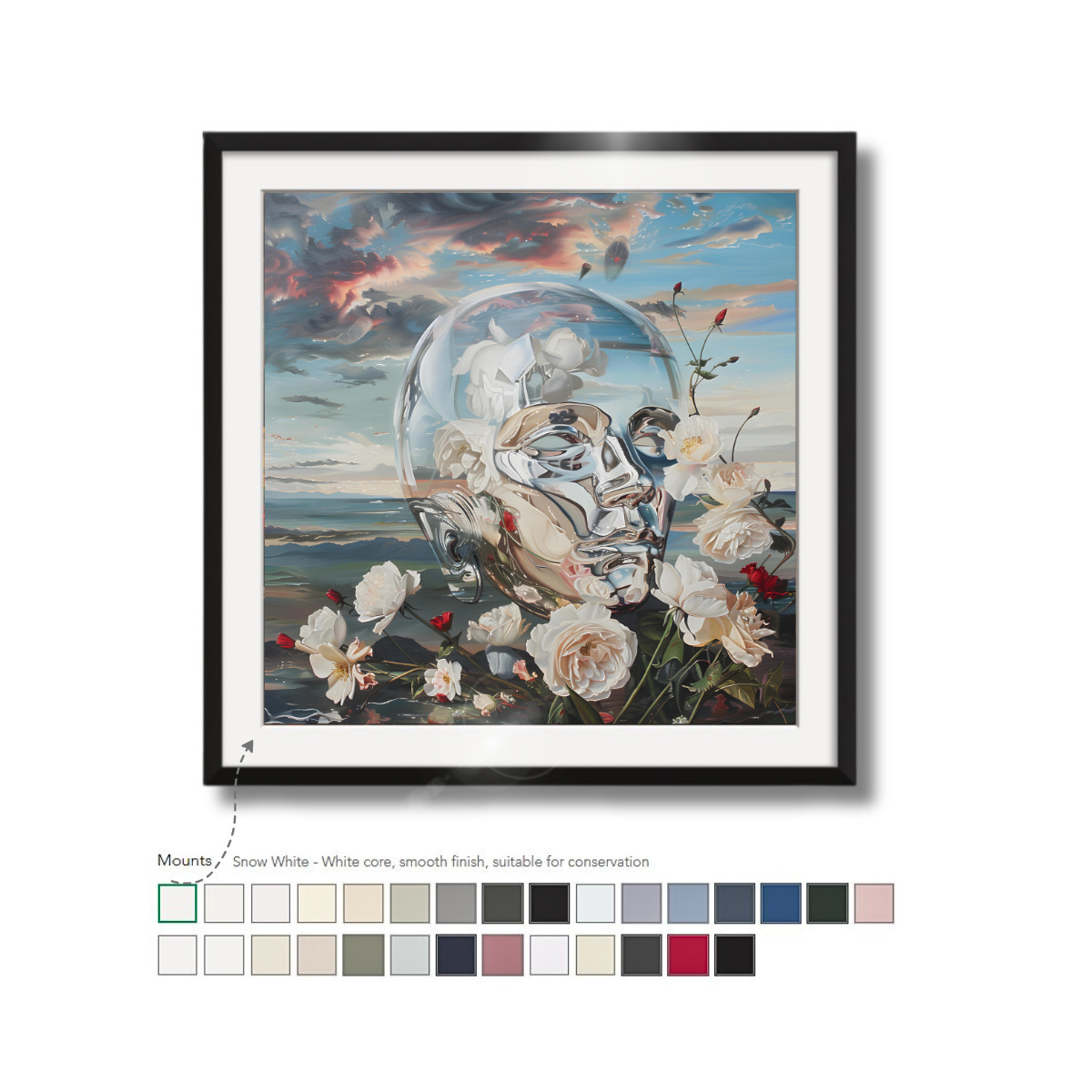 Our white core, black core, and conservation mounts are available in a wide selection of colors. They won’t discolor over time and are cut to size to fit your print and frame. Mounts help to lead the eye into the image and create added depth to your framed print.