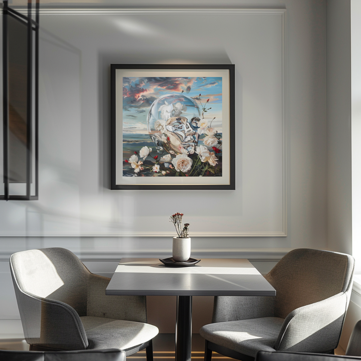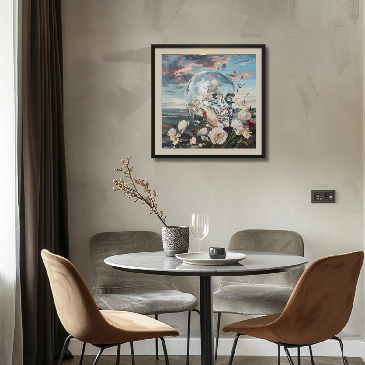 Frame of the painting: Black Lacquer, 14mm width, 13mm depth. However, you can choose another frame color: Dark Wood, White, Light Wood, Metallic.