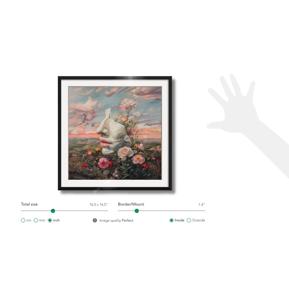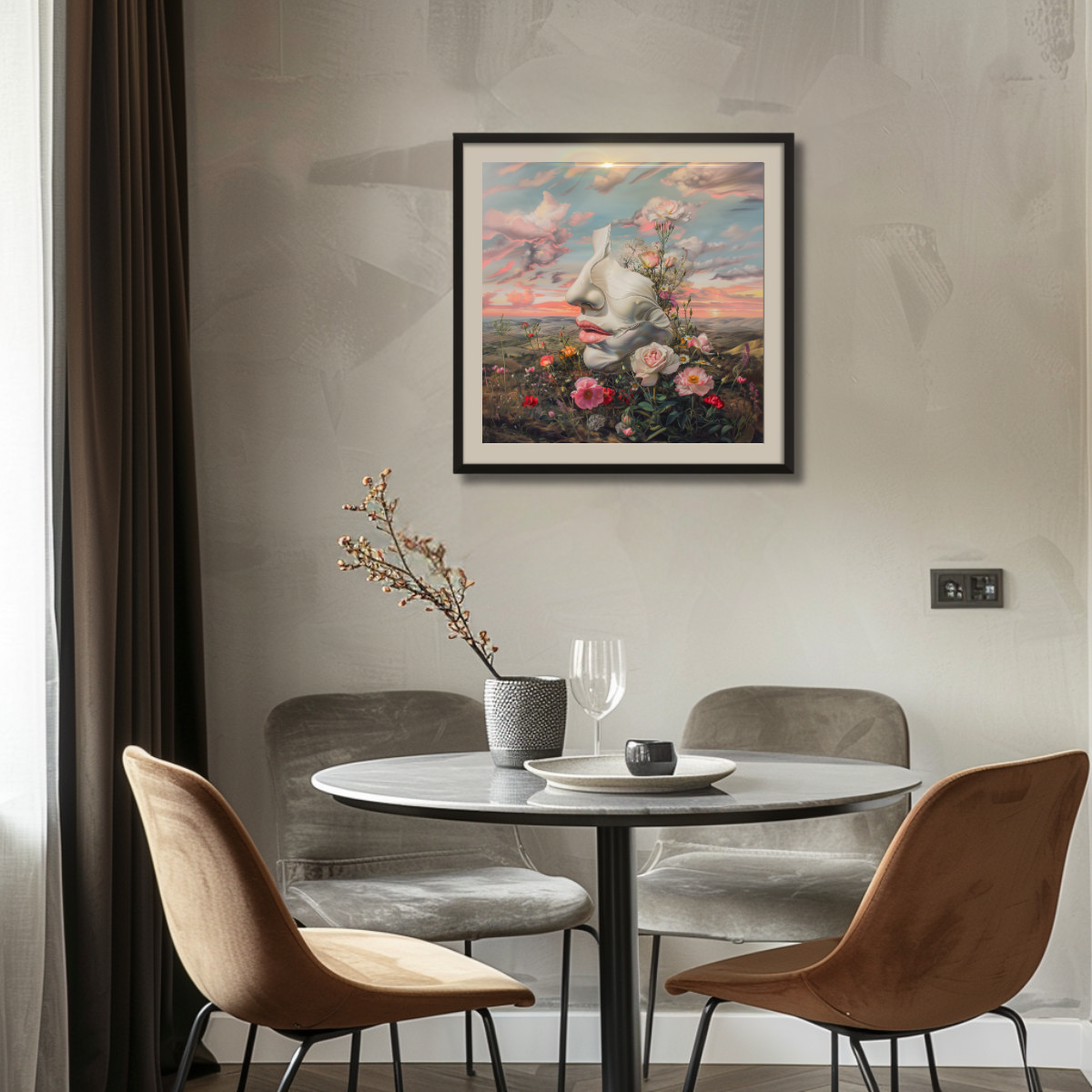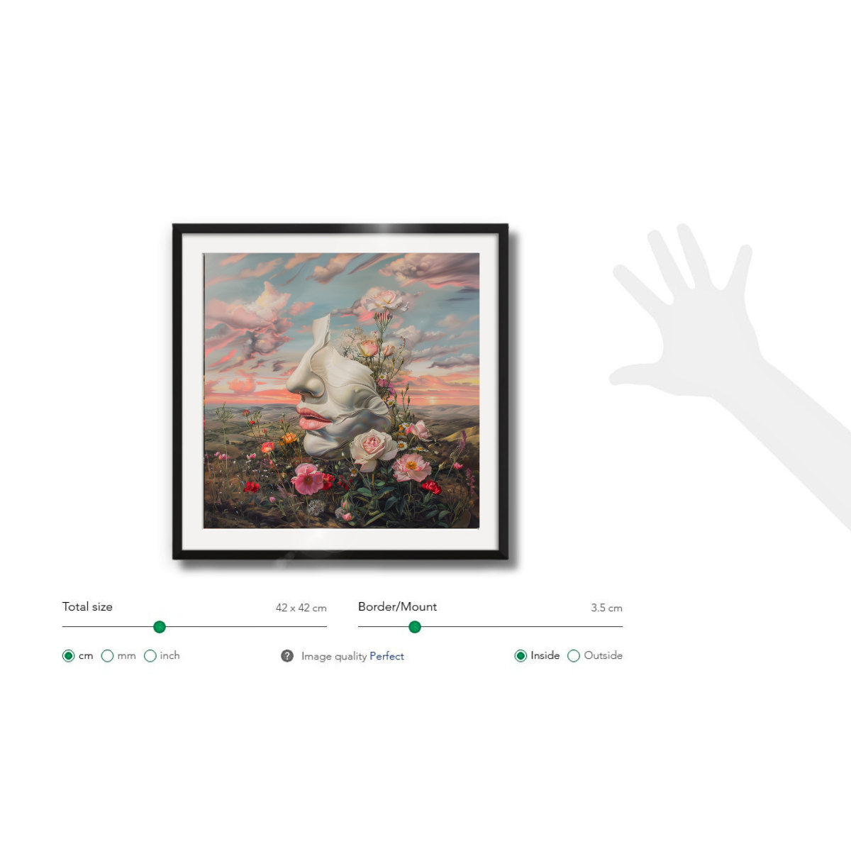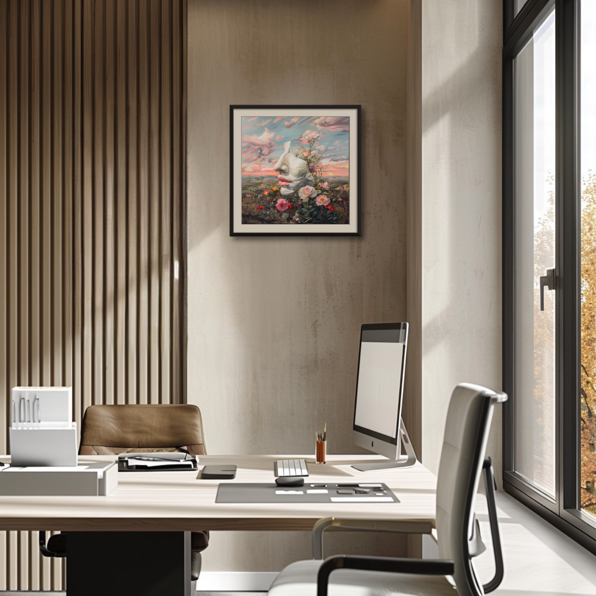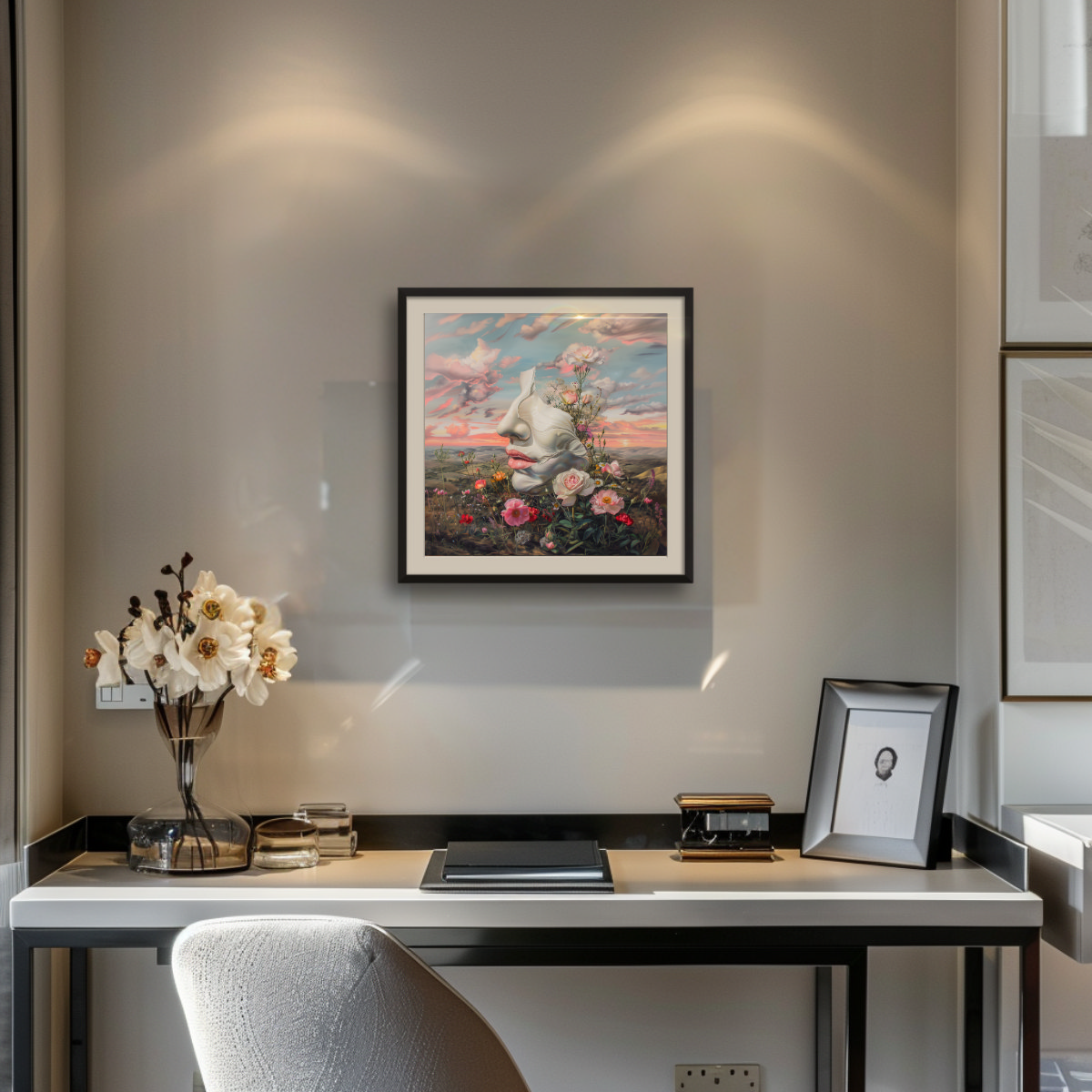 Frame of the painting: Black Lacquer, 14mm width, 13mm depth. However, you can choose another frame color: Dark Wood, White, Light Wood, Metallic.
