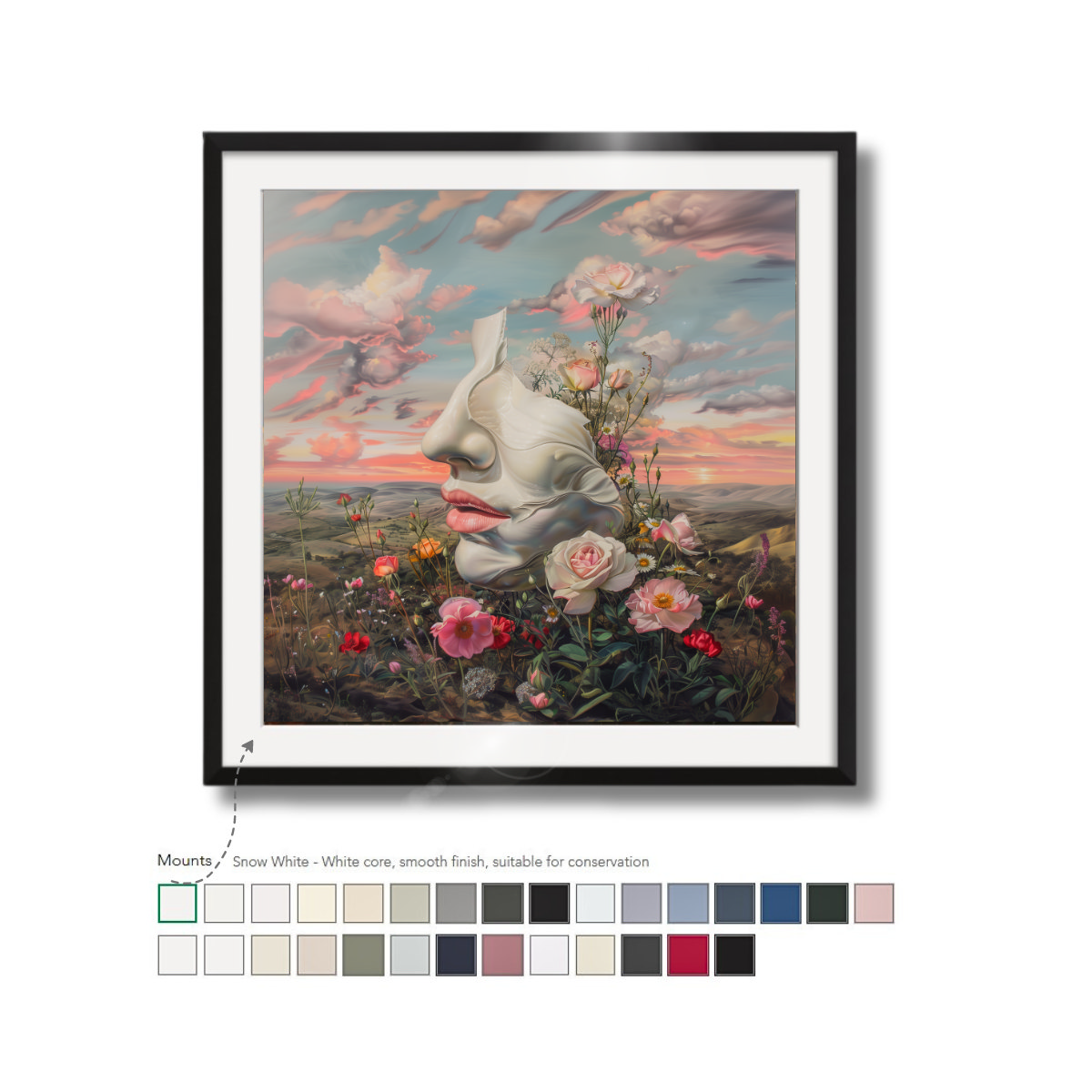 Our white core, black core, and conservation mounts are available in a wide selection of colors. They won’t discolor over time and are cut to size to fit your print and frame. Mounts help to lead the eye into the image and create added depth to your framed print.