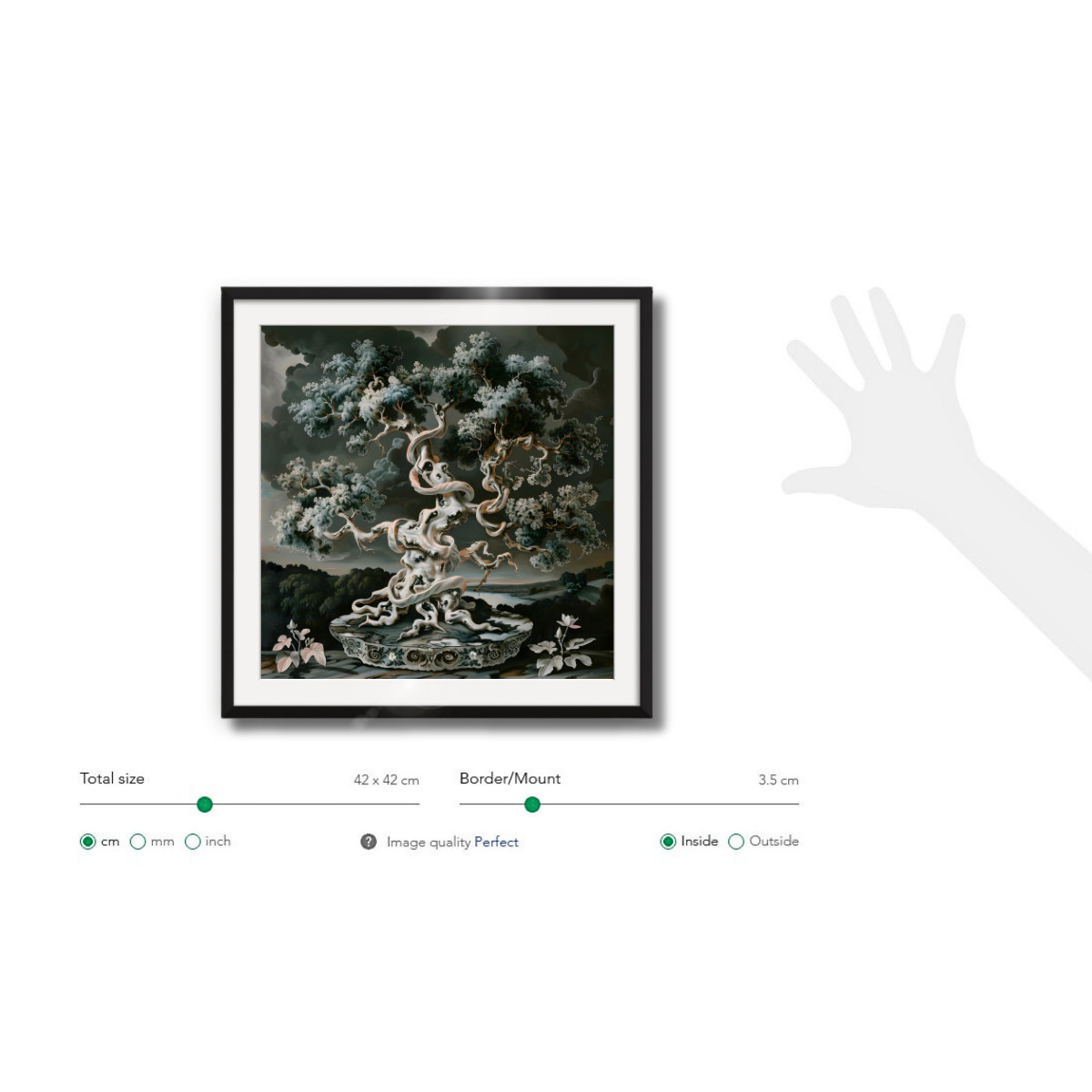 Frame of the painting: Black Lacquer, 14mm width, 13mm depth. However, you can choose another frame color: Dark Wood, White, Light Wood, Metallic.