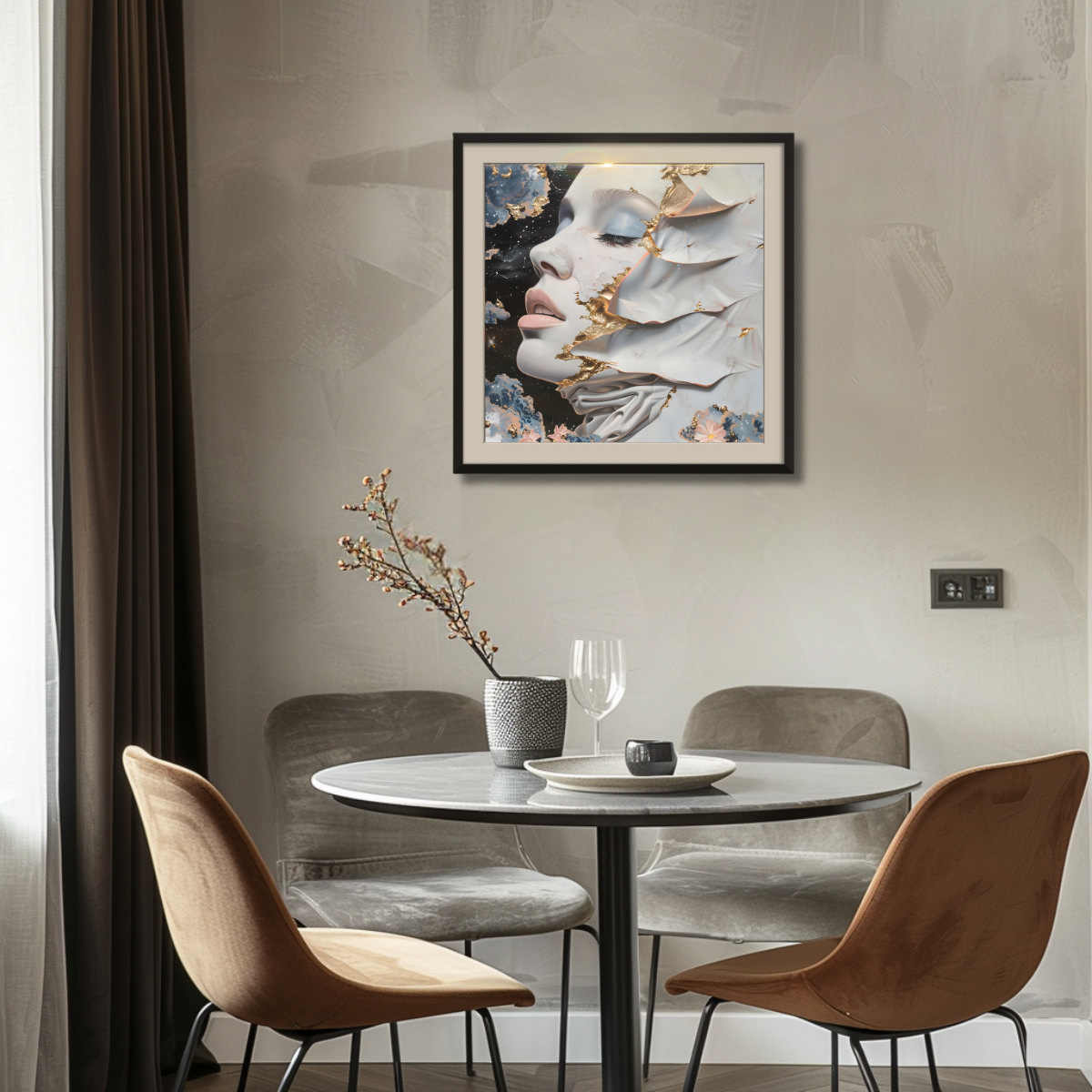 NOTE: The images in situ are computer generated, might not be to scale, and serve for illustration purposes only. Due to differences in color settings on your monitor or phone screen, the colors of the painting might be perceived differently.