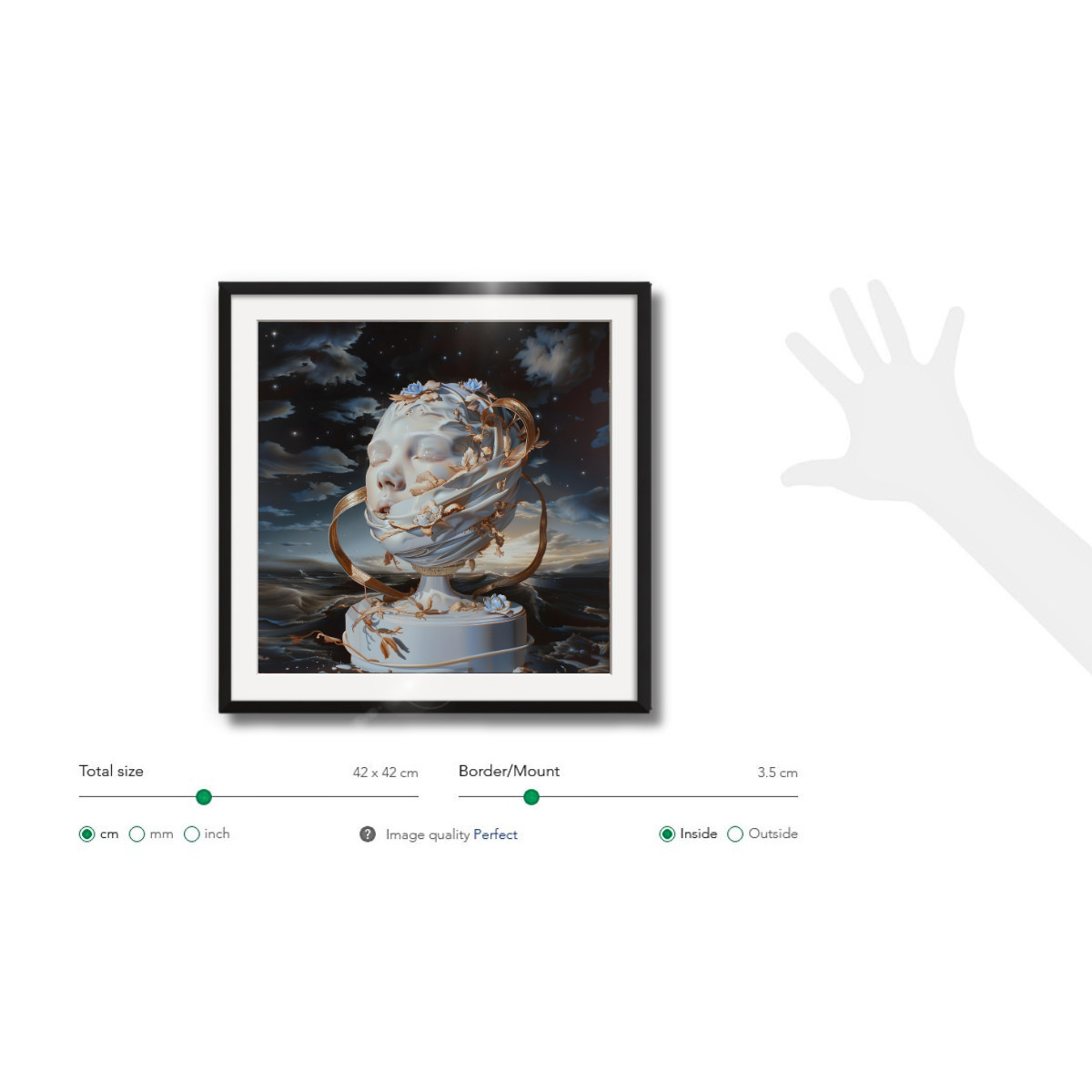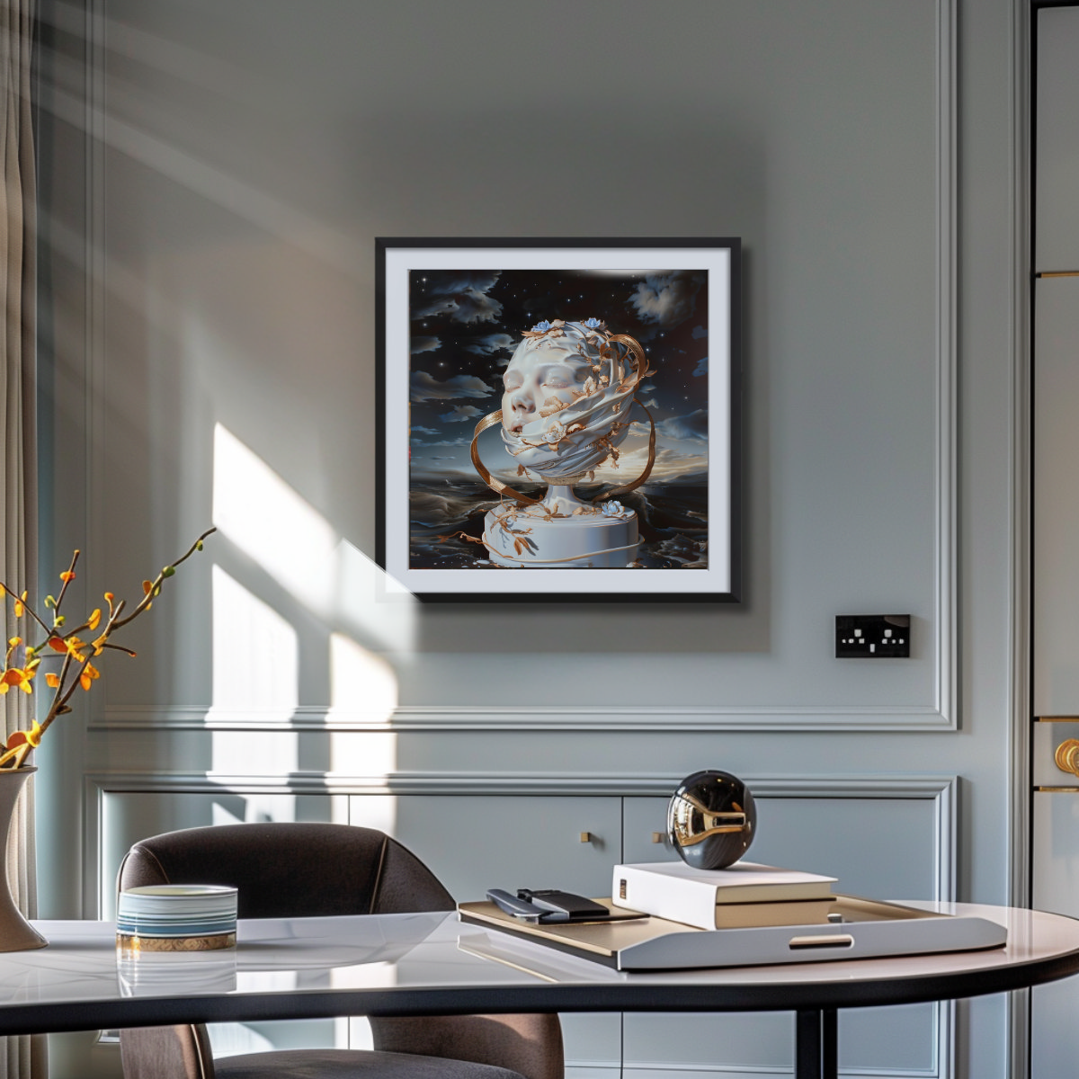 Frame of the painting: Black Lacquer, 14mm width, 13mm depth. However, you can choose another frame color: Dark Wood, White, Light Wood, Metallic.