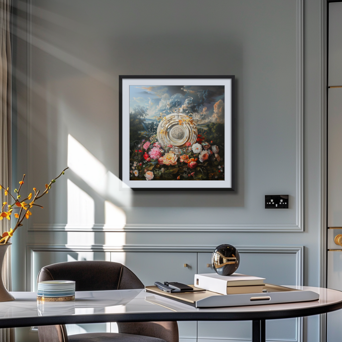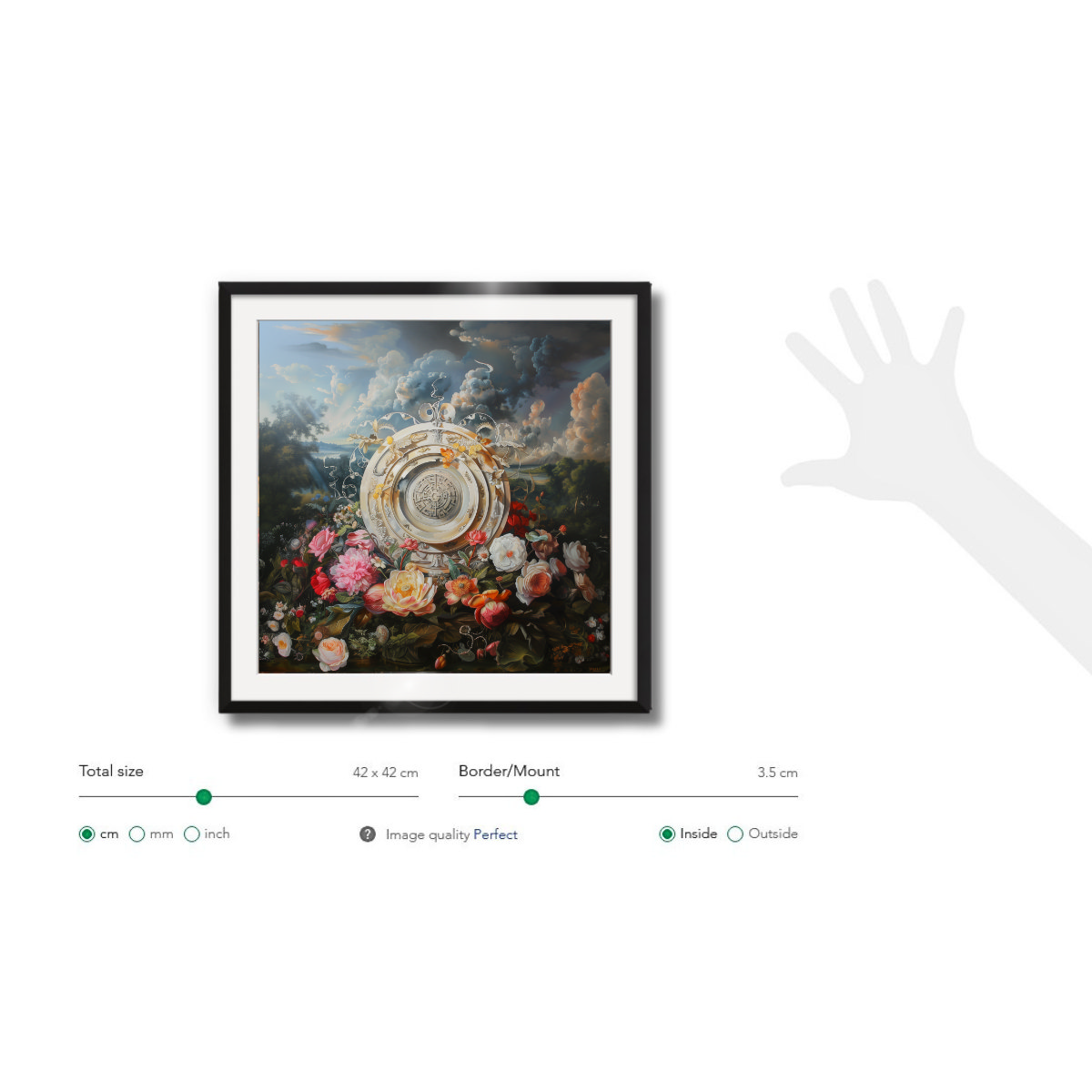 Frame of the painting: Black Lacquer, 14mm width, 13mm depth. However, you can choose another frame color: Dark Wood, White, Light Wood, Metallic.