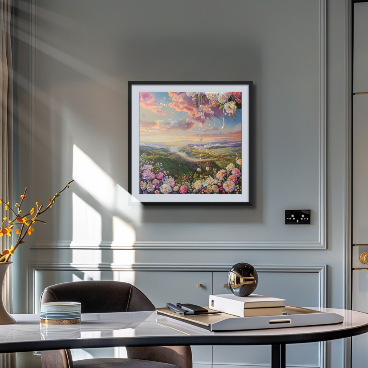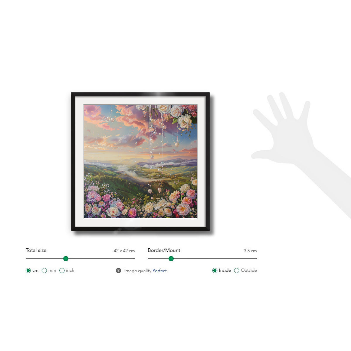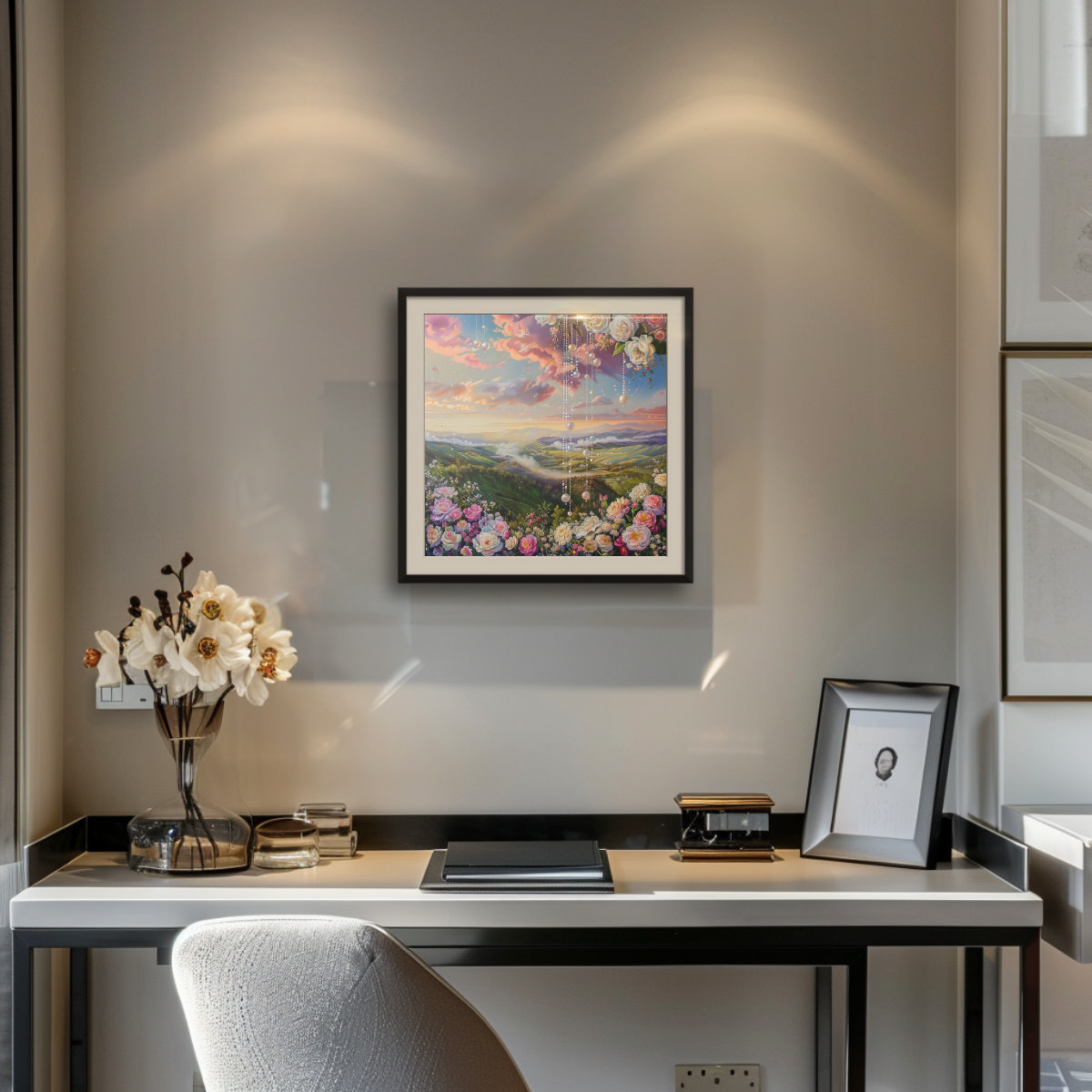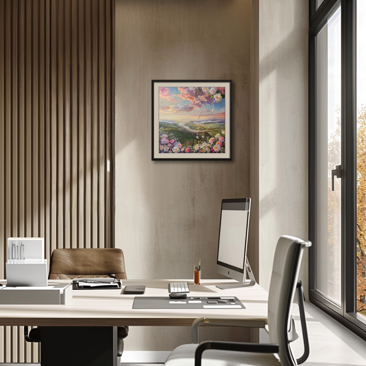 Frame of the painting: Black Lacquer, 14mm width, 13mm depth. However, you can choose another frame color: Dark Wood, White, Light Wood, Metallic.
