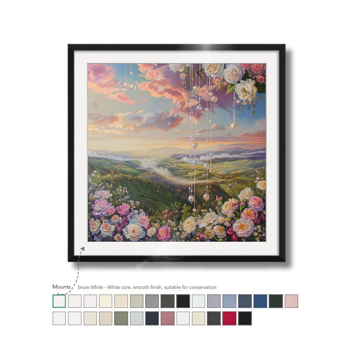 Our white core, black core, and conservation mounts are available in a wide selection of colors. They won’t discolor over time and are cut to size to fit your print and frame. Mounts help to lead the eye into the image and create added depth to your framed print.