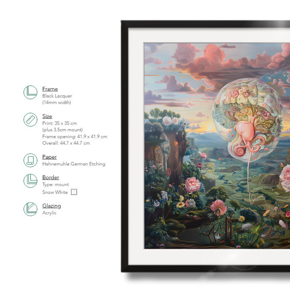 Paper: Hahnemuhle German Etching. Matt / 310gsm. A heavy-duty paper with a more textured finish than Photorag, a velvety matt surface, and a warm white hue with traits of a traditional artist board — reproduces painterly images, lithographs, and pastels superbly.